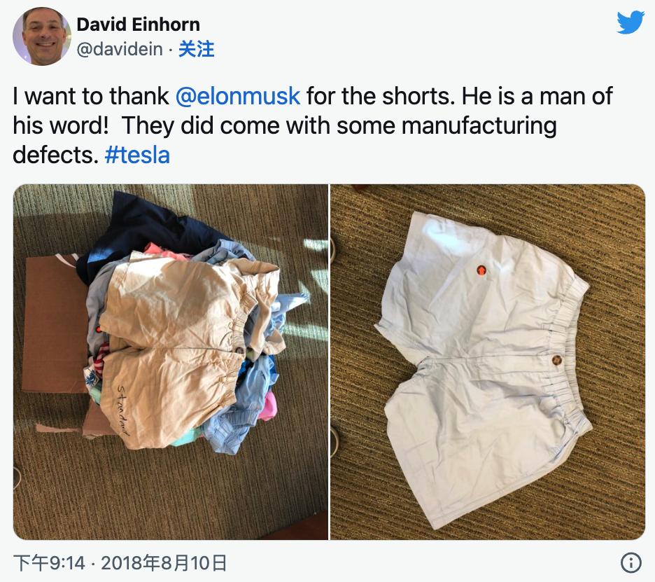 第二天埃因霍温在twitter上晒出了照片:“短裤已收到,但貌似质量一般。”言语里讽刺马斯克不择手段地追赶产能目标,而忽略安全环节的检测。