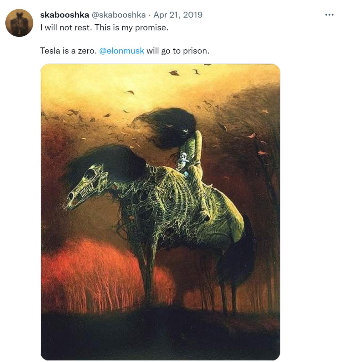 对马斯克来说,TSLAQ就像头顶上挥之不去的苍蝇。当然,百战成精的老马也不是善茬,他先是写了一封邮件声称霍蒂“差点杀死特斯拉员工”(但法院其实没有对霍蒂定罪),然后让这封邮件“不小心”被泄漏到网上,马上就引来了一群特斯拉铁粉,对霍蒂发出人身攻击和死亡威胁。