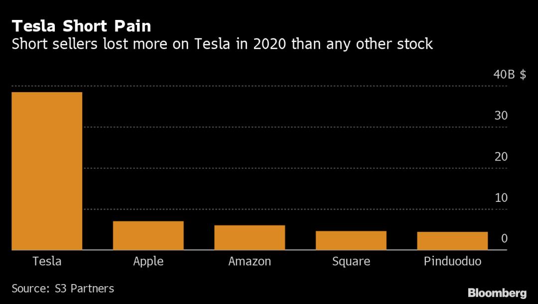 2020年,特斯拉空头的损失达到惊人的380亿美元,仅在8月份空头就赔了70亿美元,创造了历史。