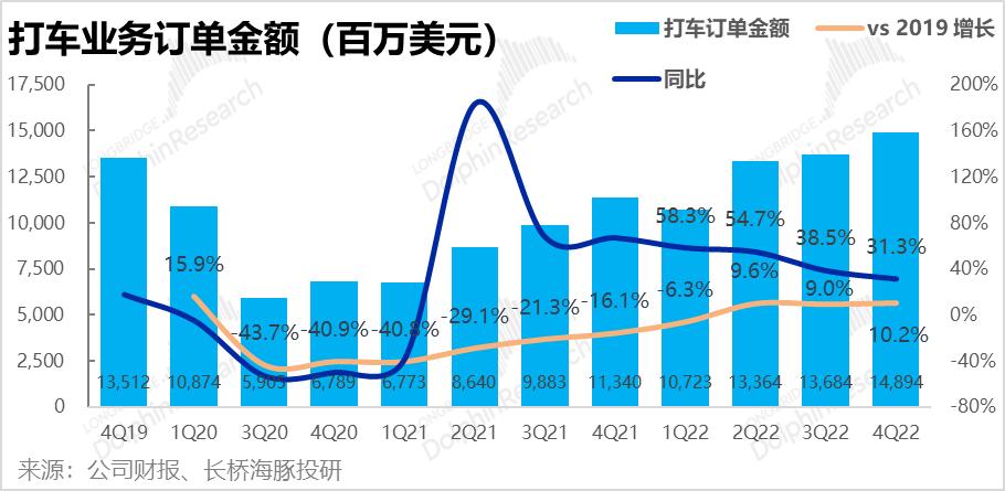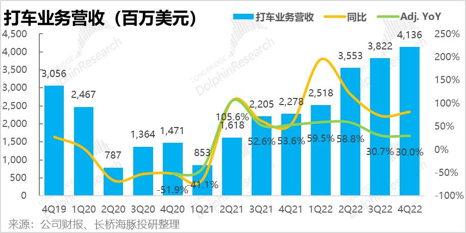 1)打车业务的Adj.EBITDA超10亿美元,略高于市场预期的9.9亿。