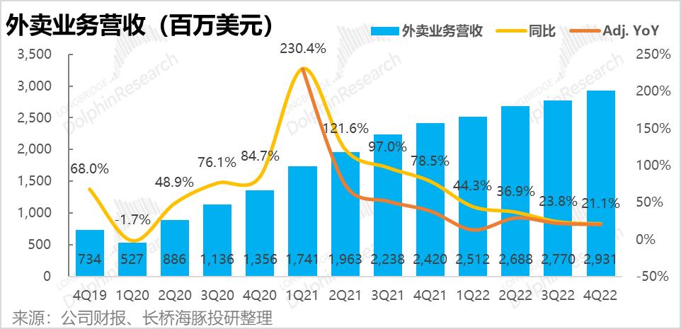2)外卖业务则实现Adj.EBITDA 2.4亿,远远超出市场预期的1.8亿,Adj EBITDA利润率为8.2%,远高于市场预期的6.6%。