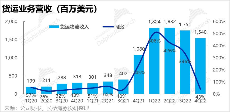 3.客单价红利结束,未来增长将回归到由量驱动:在疫情期间,由于油价上涨、全面通胀和运力供给短缺,持续上涨的客单价成为了推动公司GTV成长的主要因素,但随着石油价格下跌、运力供给恢复,本季度客单价也同比下跌了1%。由于通胀下降的趋势大概率会继续,2023年内客单价反而可能成为拖累,单量将成为增长的主动力(可能力不从心)。