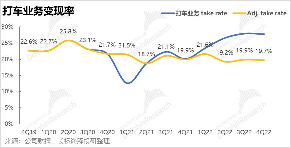 二、外卖业务继续提升变现,打车变现则在趋势性下降