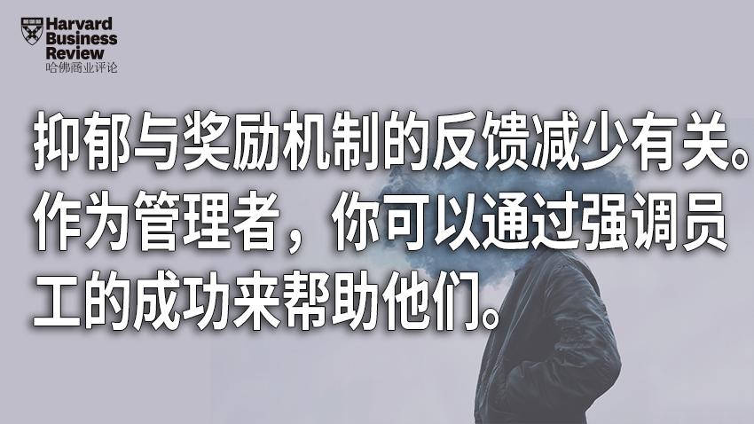 抑郁与奖励机制的反馈减少有关。作为管理者,你可以通过强调员工的成功来帮助他们。随着时间的推移,不断的成功会创造出更多积极的工作体验。这影响了员工感知环境的方式,提升了他们的积极预期。这些“胜利”增加了员工的自信,他们可以在未来有信心完成所分配的任务。