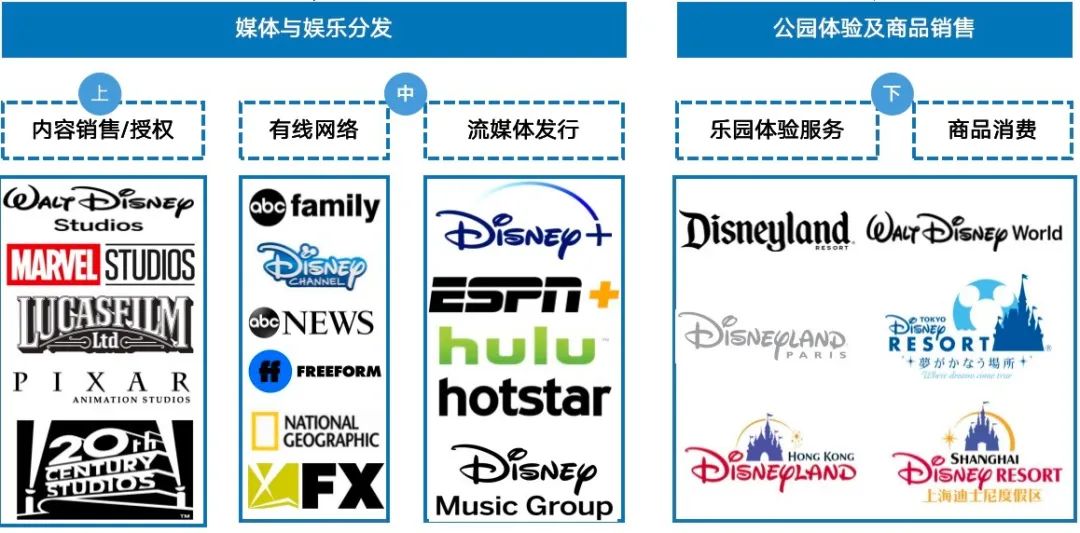 2、【主题公园及商品零售】多年发展已经较为成熟,第一IP储备加持下,迪士尼主题公园业务龙头地位稳固,更多的受到整体消费的影响。常态下,可以视为一个稳定现金流。