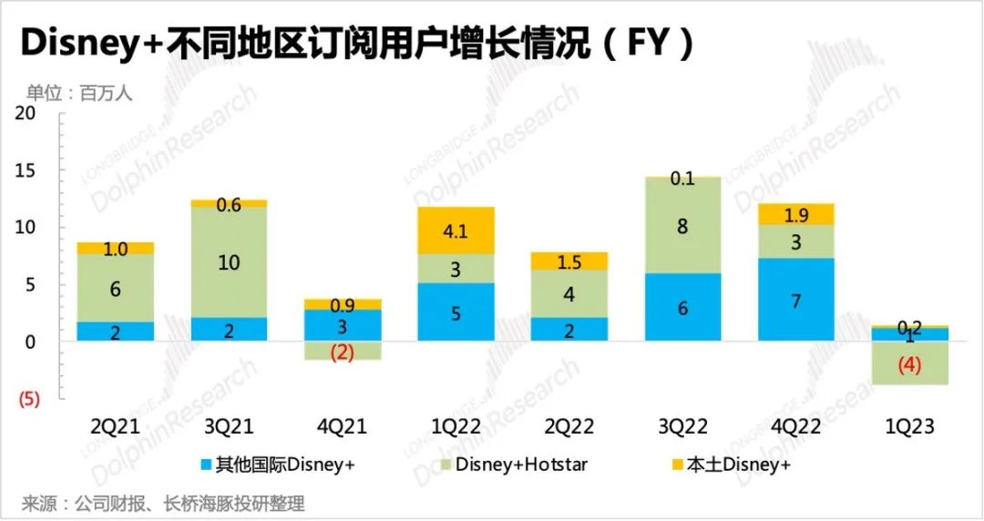 2、Disney+更加追求增长的“质量”:一季度流媒体用户环比流失100万订阅用户,显著弱于一致预期,但与部分核心投行的预期差不多。其中Disney+流失情况最惨,主要源于迪士尼没有继续拿下印度IPL2023-2027年的五年独播版权。除此之外,就是北美地区的增长明显走弱,也基本与第三方app活跃数据的趋势相一致。