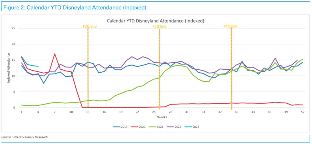 从北美的入园客流来看,佛州迪斯尼2023年一季度客流量相对2022年同期已经略有下滑,加州迪士尼则因为对南加州提供特惠门票而需求再次增加。但这背后无法忽视的是后疫情出游红利的正在消退。虽然国际市场与本地市场的出游热存在一个时间差,但由于本地主题公园的收入占比更高,因此对整体集团公园业绩的影响更大。预计Iger对主题公园业务也会有一个调整,通过提供更多的优惠,降低用户的园区消费压力,来达到延续出游需求的效果,就好比这一次加州主题公园的特价门票。
