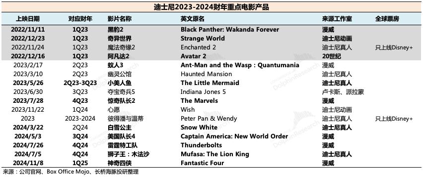 2023财年,迪士尼旗下影视内容仍然重磅云集,漫威IP、星际IP是主要看点。