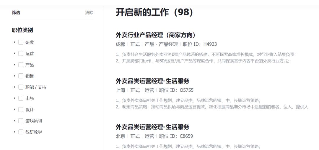 与此同时,字节跳动官网也已经挂出外卖商品高级运营经理、外卖行业解决方案运营、餐饮直播达人运营高级经理等相关职位。