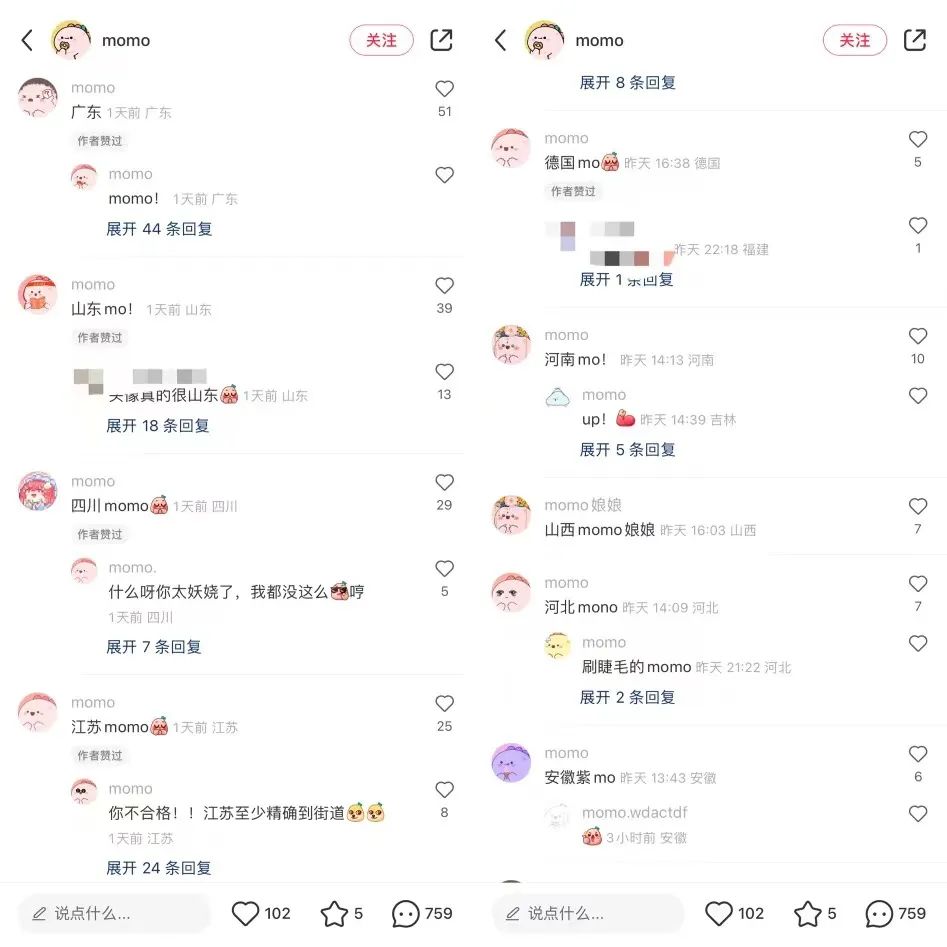 现在,在豆瓣、小红书或是其他一些社区平台,经常有人发帖问“momo是什么组织”,这时候会有一大群momo冒出来,流量高的帖子获赞数能超过1万,评论互动也有几百甚至上千,评论区还会有部分momo热情邀请对方加入自己的“阵营”。