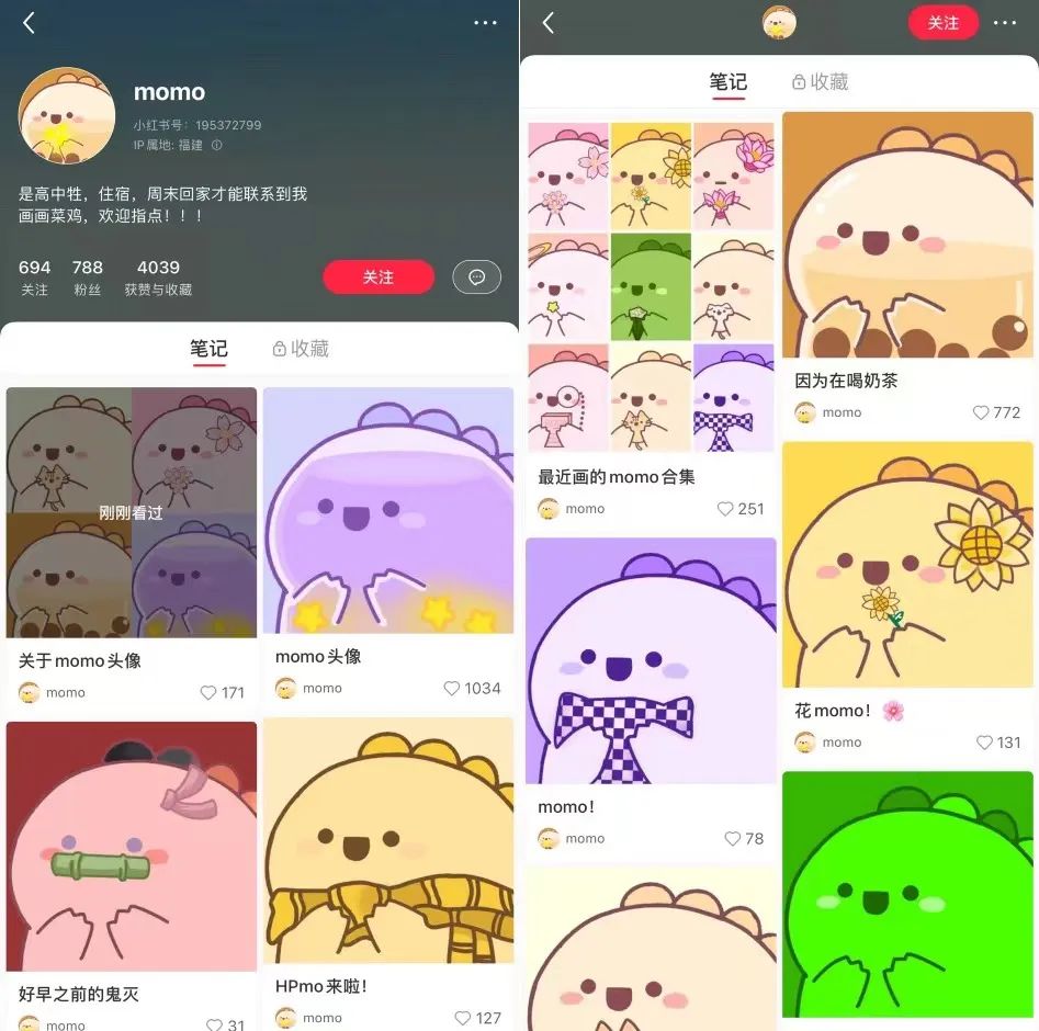 小红书上有一位momo画手,目前还是个高中生,从1月末开始分享自己创作的momo头像,有充电版、《鬼灭之刃》版、《哈利波特》版,笔记点赞数持续走高,热度最高的一条获赞超过1000次。