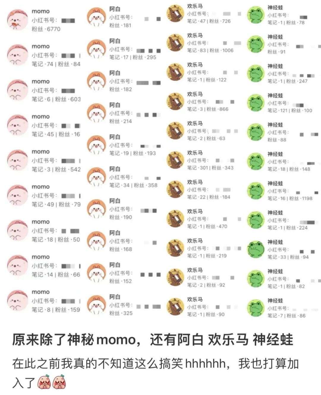 momo的账号多了之后,对于momo话题的讨论热度也日渐走高。豆瓣上出现了“momo”的专组,组员已经超过3159人;小红书上每天都有关于研究momo到底是谁的新笔记,热度高的点赞能破万,吸引一众momo前来团建。
