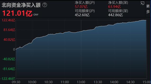 截至收盘,沪指涨1.18%,深成指涨1.64%,创业板指涨1.74%;北向资金净买入121.01亿元;两市超4200股飘红。