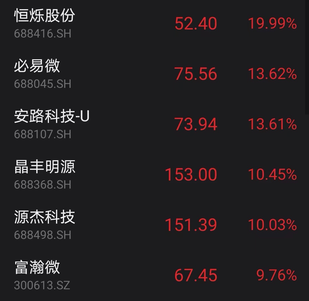 半导体芯片股再度冲高,景嘉微、恒烁股份涨超15%,阿石创、炬光科技、必易微、海光信息、富瀚微、寒武纪等纷纷走强。