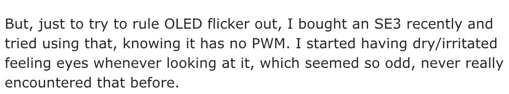——这名网友为了避免OLED的频闪而购买了iPhone SE3,但使用几天后还是感觉眼睛干涩不适。