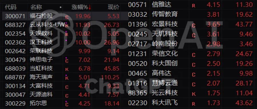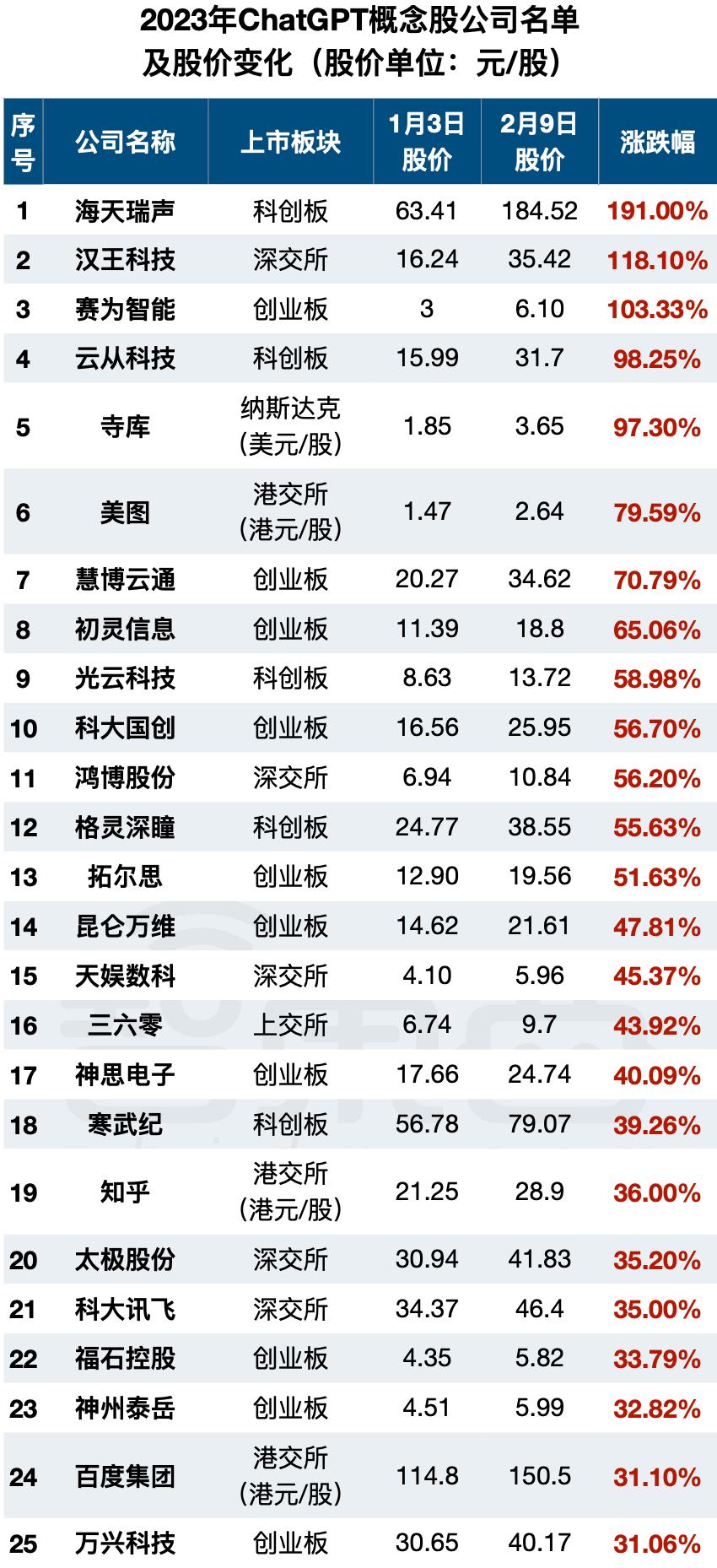 ▲2023年国内ChatGPT概念股公司名单及股价变化