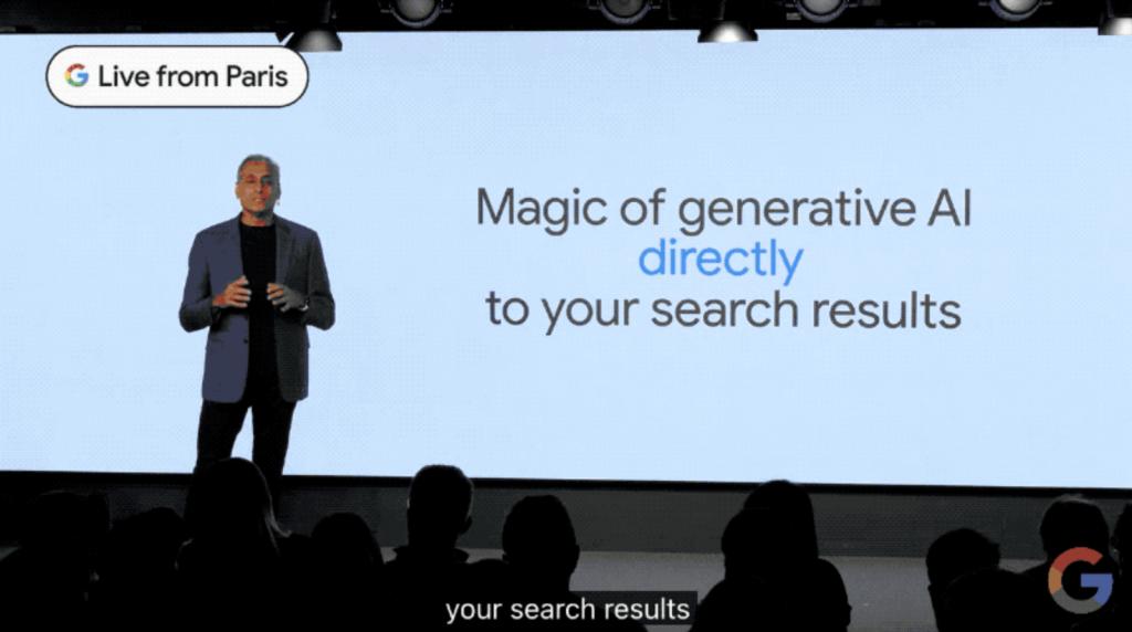 ▲谷歌在巴黎直播活动上演示引入生成式AI功能的谷歌搜索