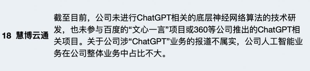 ▲18家明确回应没有涉及ChatGPT相关业务或技术应用的企业名单