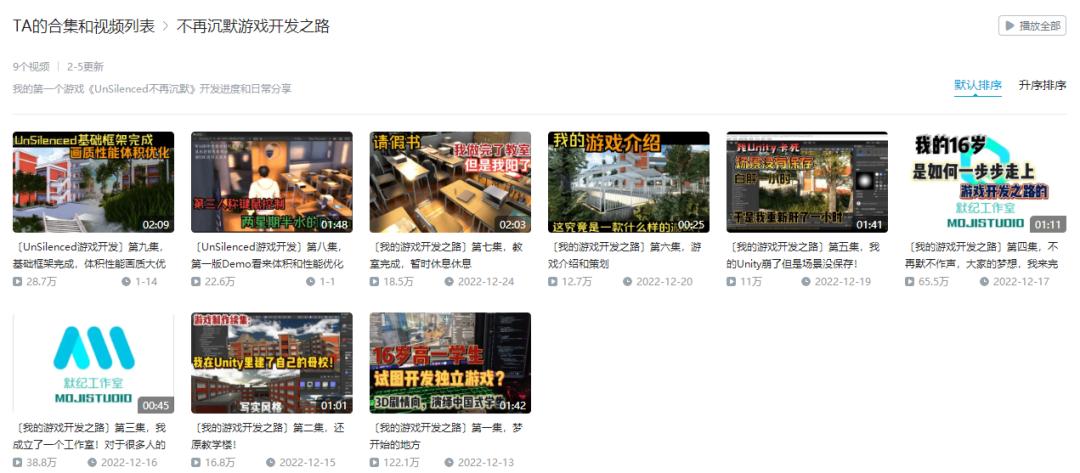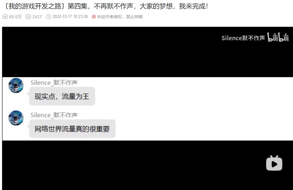 实际上,早在去年12月初,「默不作声」就已经开始上传自己的“游戏开发之路”。