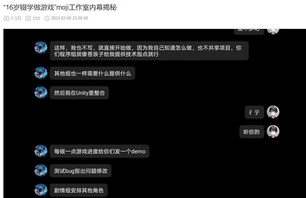 与此同时,MoJi工作室内部也显得混乱无序。第一段视频发布后,曾经有从业者愿意无偿为游戏提供帮助。但当他提出需要先写策划案时,却被告知“没有必要”,“根据我的需求提供内容就行”。最终大量分工不明,被晾在一旁的成员陆续退出,构成了所谓的「内讧」事件。