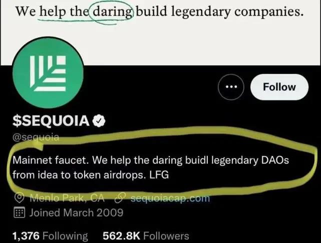 这种转向其实也表现在投资机构的动态上,2021年12月,红杉资本将自己在Twitter上的简介从“帮助有冒险精神的人创建伟大的公司”改成了“从想法到落地,我们帮助富有冒险精神的人打造伟大的DAO。”2022年,Web3赛道火热,红杉在2022年1月1日-4月26日,以大概每周一家的速度投资了17家Web3公司。