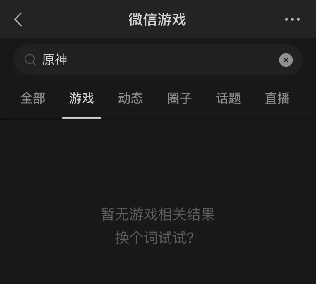 iOS微信端搜索《原神》游戏无结果