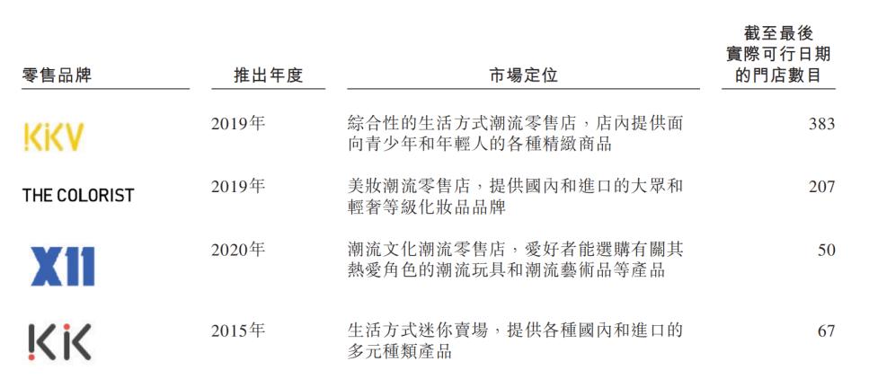 招股说明书显示,KK集团定位为“潮流零售商”,以为Z世代年轻消费者提供优质的时尚潮流商品,让美好生活无边界为使命。目前旗下共有综合性生活方式潮流零售店KKV;美妆潮流零售店THE COLORIST(调色师);潮流文化零售店X11以及生活方式迷你卖场KK四种类型的线下零售店,截止2022年10月31日在全球总共有701家门店,其中的556家为自有直营店铺。