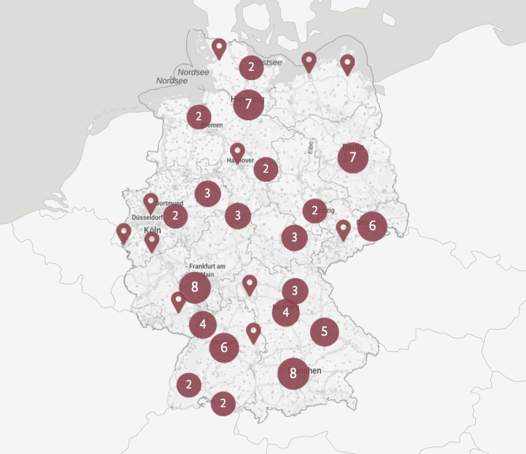 德国关键集群的互动地图,图片截屏自https://www.clusterplattform.de/