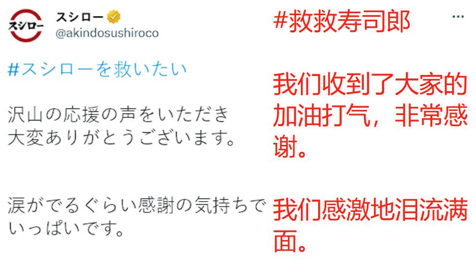 推特上,也有一些人为无辜受害的店家鸣不平,发起了“救救寿司郎”的活动。