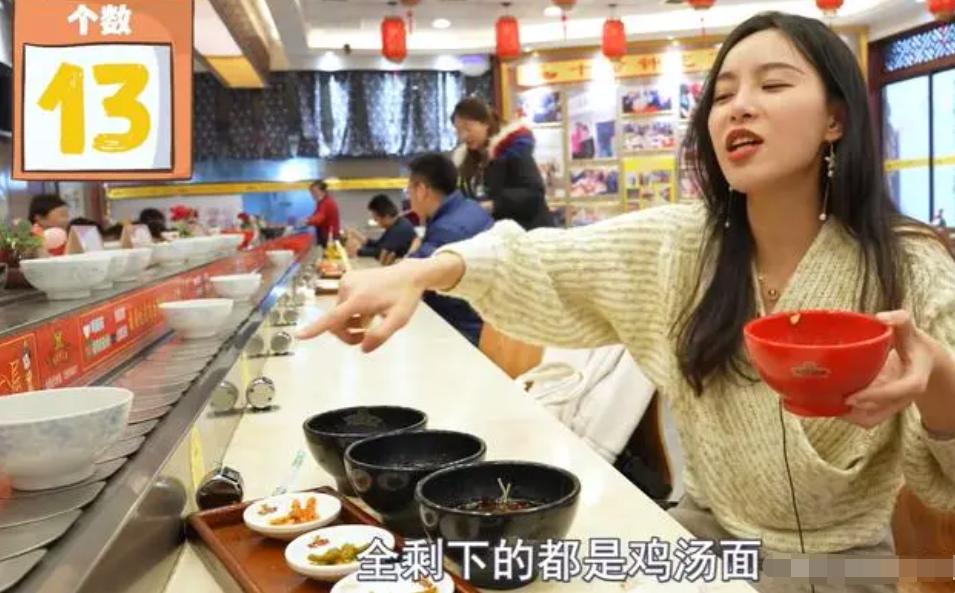 抖音拥有百万粉丝的网红小贝饿了,在吃29元/位的自助旋转面馆时,为了博眼球,提前拿走了转台上所有的香辣面。