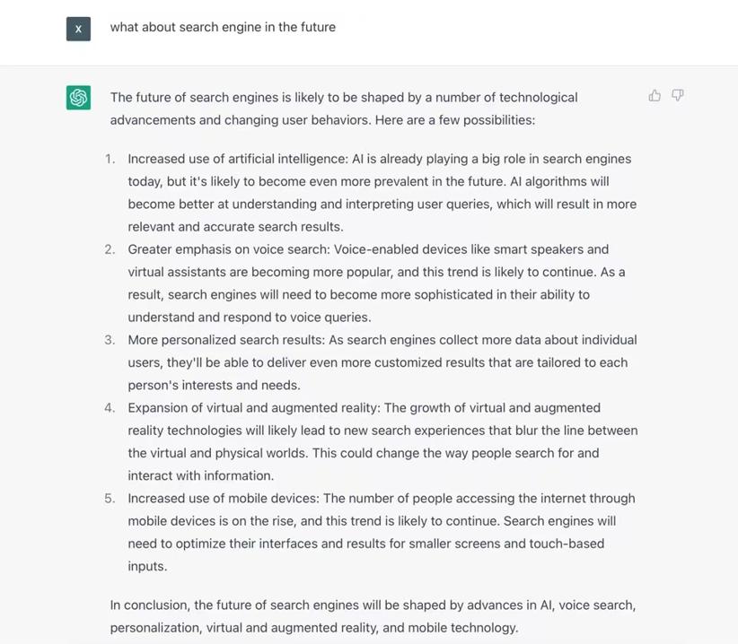 ChatGPT:很难准确预测搜索引擎未来将如何发展,但我们可以根据当前的趋势和技术进步做出一些有根据的猜测。以下是几种可能性: