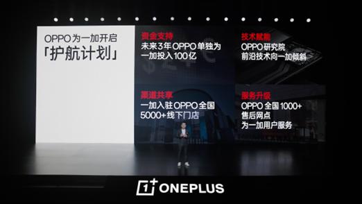 同时会上宣布,OPPO与一加进入“双品牌时代”。OPPO开启“护航计划”,在未来三年为一加投入100亿元,助力其全面升级。