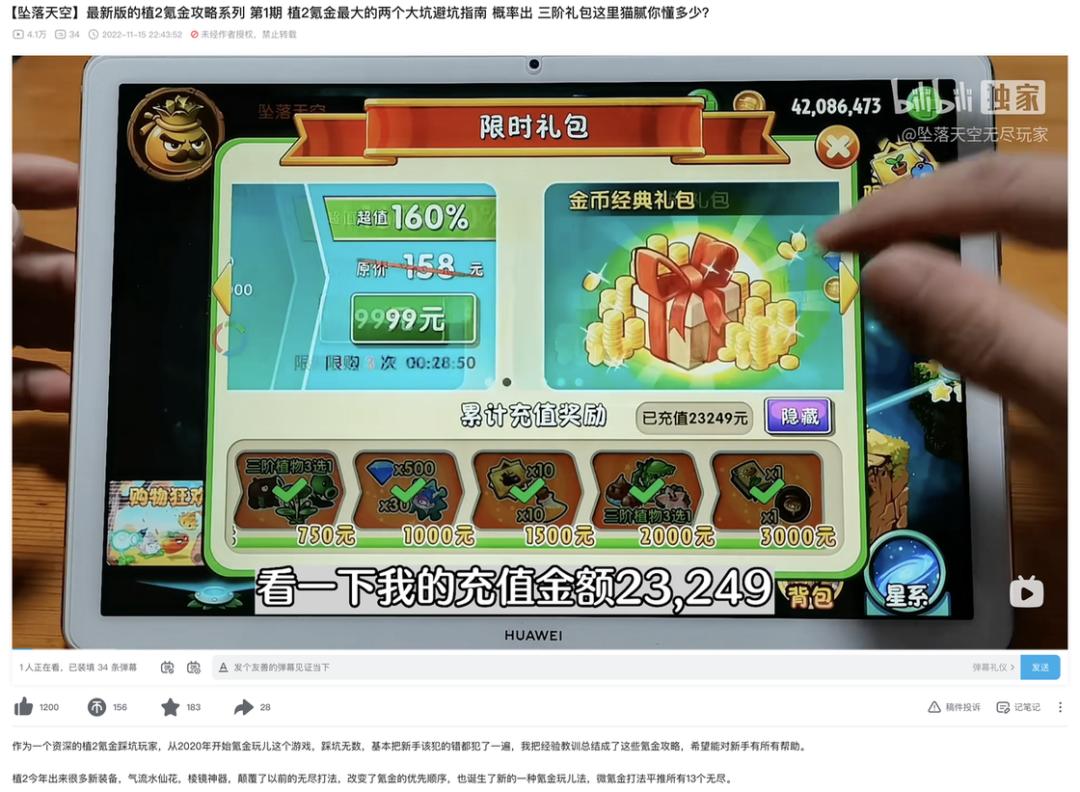 目前,拓维信息代运营的中国版《植物大战僵尸 2》依然在正常运作,我们从国内主要应用商店下载到的也是由拓维信息代运营的中国版。进入游戏需要实名认证,且有未成年人游戏保护系统。氪金系统依然存在,根据 Bilibili UP 主 @坠落天空无尽玩家 多年的氪金情况来看,从 2020 年到 2022 年大概花了 2 万 3 千元左右。