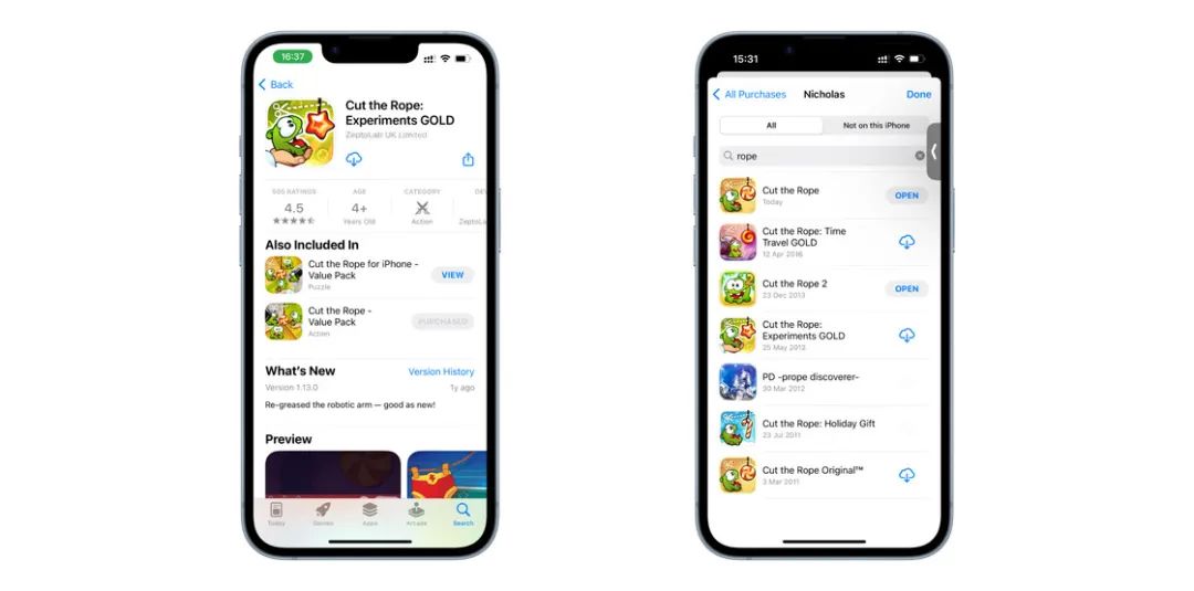 如果你此前购买过《Cut the Rope》,如今想要游玩可能会遇到一点小麻烦——部分版本的《Cut the Rope》已经下架或被订阅制版本取代,需要重新下载;还有几作在游戏名称后面加上了「Original」或者「GOLD」的后缀,相当于「经典版」,对于新 iPhone 机型的适配程度参差不齐。
