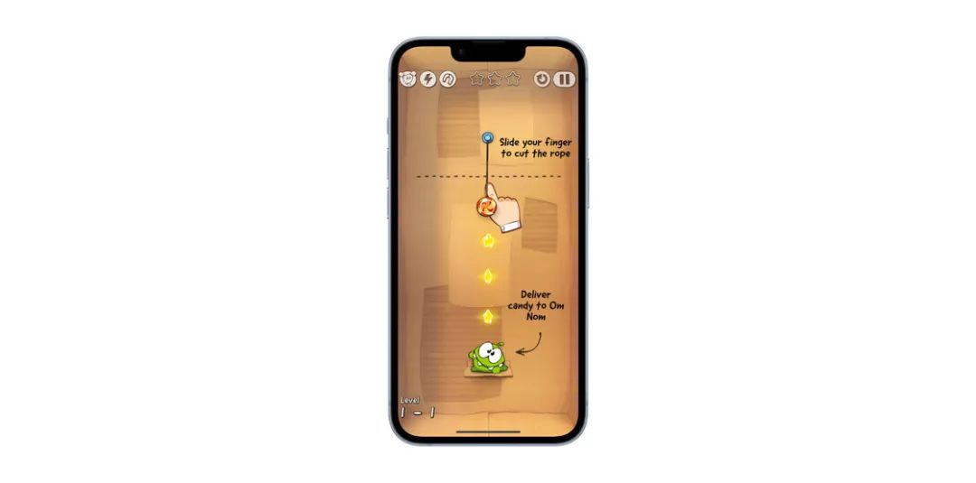 《Cut the Rope》从一开始就有着简洁而明确的世界观设定。游戏的主角是一只叫 Om Nom 的小怪兽,他喜欢吃糖果和星星。在《Cut the Rope》中,玩家需要划断绳索或破解一些简单谜题,利用重力让 Om Nom 吃到糖果和星星,完成关卡。