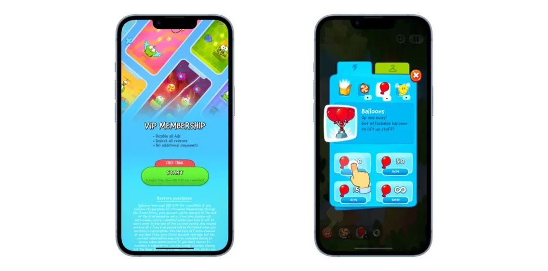 时过境迁,《Cut the Rope》系列游戏本身也跟随时代变化,从从前的买断制变成了订阅制,订阅价格为每月 9.99 美元,并不便宜。不过,不付费也可以在开启广告和内购的前提下免费游玩,整体收费模式与主流无异。