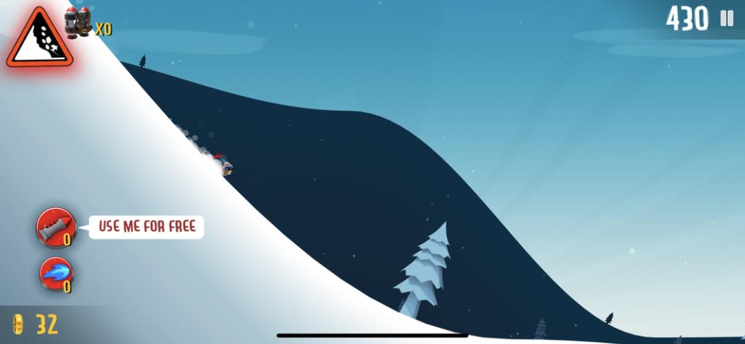 在《滑雪大冒险》中,一次失误不代表游戏就会立刻结束,取而代之的是给你不断点击屏幕的机会,让你的角色在雪崩来临以前重新站起来的机会。这种总能接着滑下去的错觉,很有可能让你不留神一滑一下午。