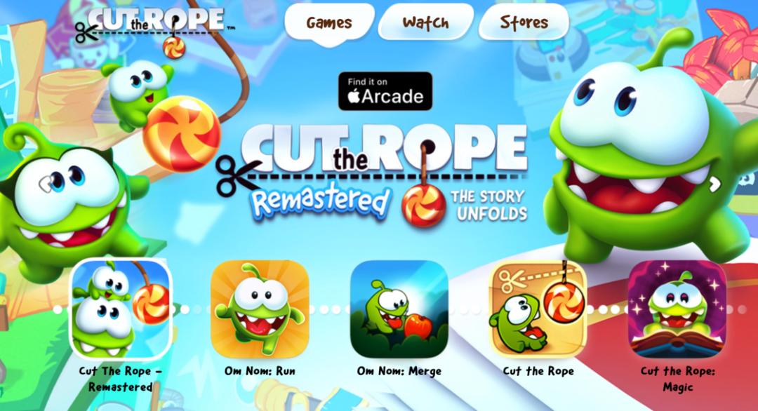 目前《Cut the Rope》系列的几部主要作品,图片截取自《Cut the Rope》网站