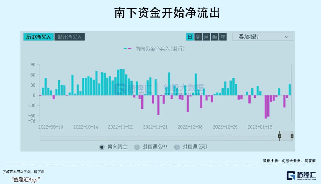 最明显的是近两周港股指数明显回落,南下资金流出越来越多。2月的第一周,港股通刚重启,南下资金就出现了高达175亿港元的净流出,是2021年8月以来最高单周纪录。