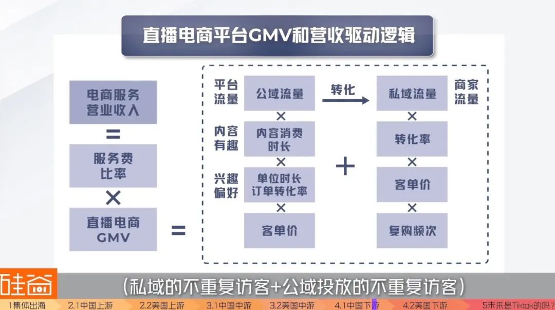 而快手那边的流量分发,采用的公式是:商品交易总额=(私域的不重复访客+公域投放的不重复访客)内容消费时长单位时长订单转化率客单价复购频次。