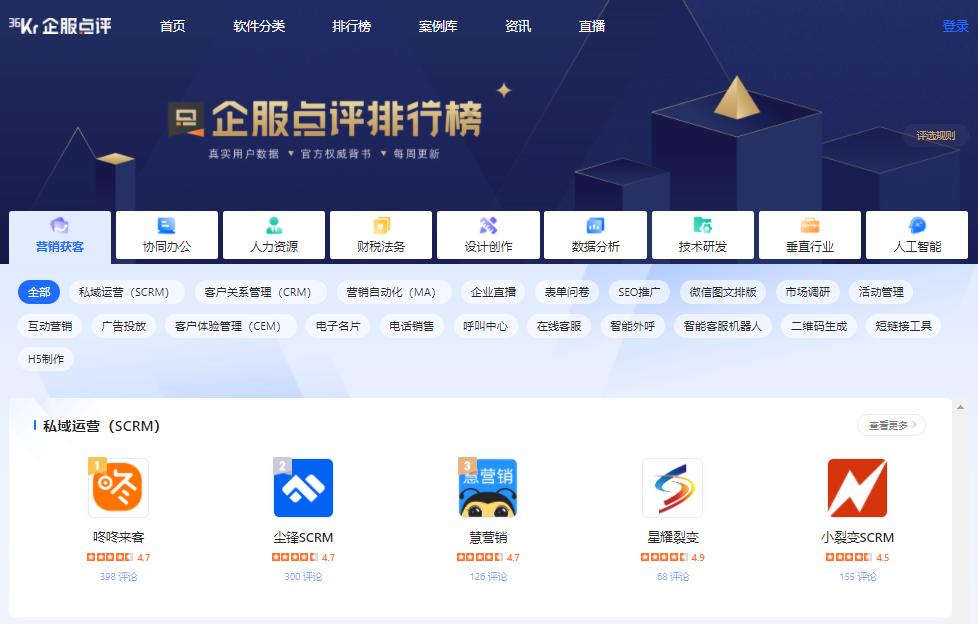 找好用的营销获客SCRM工具 ,就来36氪企服点评。