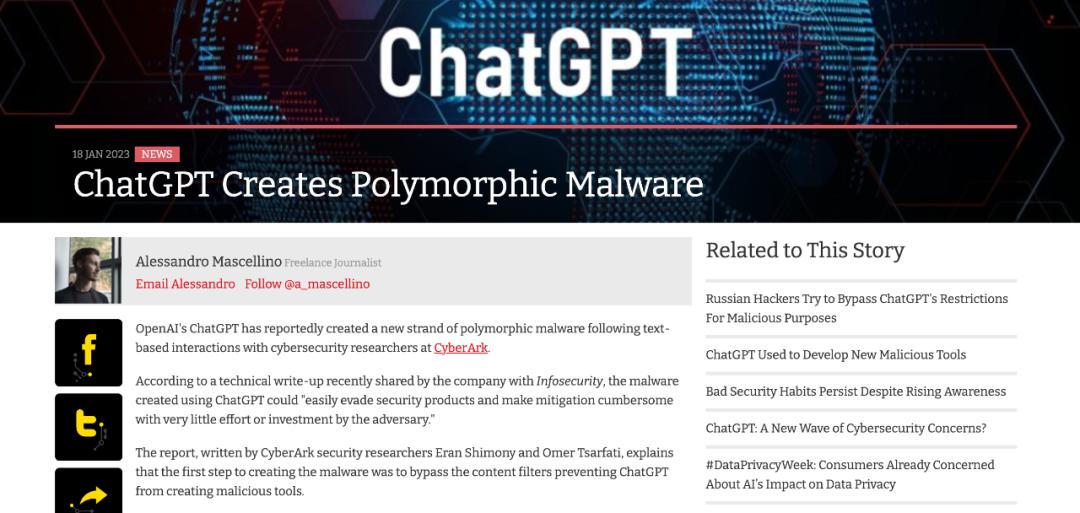 在安全公司CyberArk的一份新报告中研究人员发现,可以欺骗 ChatGPT 为你创建恶意软件代码。更糟糕的是,网络安全系统很难处理上述恶意软件。