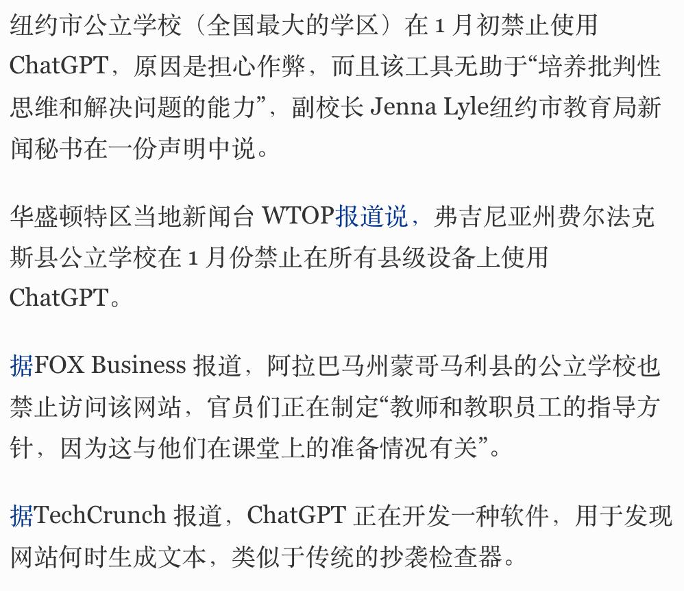 虽然,美国、澳大利亚的诸多学校已发出通知,禁止学生使用 ChatGPT,直到可以“评估该软件的适用性”。然而,很难看到这种趋势会放缓。