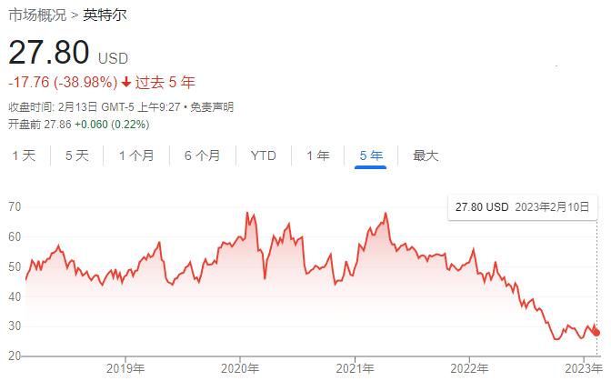 英特尔日前发布2022年四季度财报,财报显示,英特尔营收同比大降超3成,净亏损6.6亿美元。财报发布后,投资者们果断用脚投票,盘后英特尔股价暴跌9.7%。