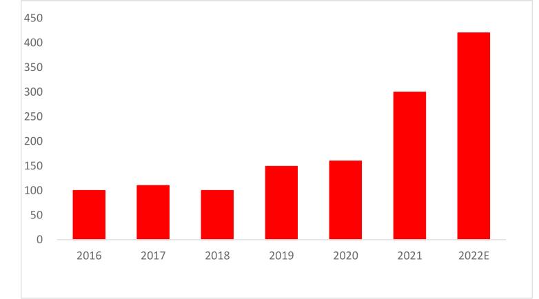 为了更进一步理解半导体的资金壁垒,我们看下台积电的历年资本开支。2021年,台积电的资本支出再创新高,达到300亿美元,其中研发支出约为45亿美元。