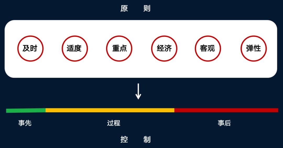 我们可以遵循及时、适度、重点、经济、客观、弹性这几个原则,进行事先、过程、事后的控制。