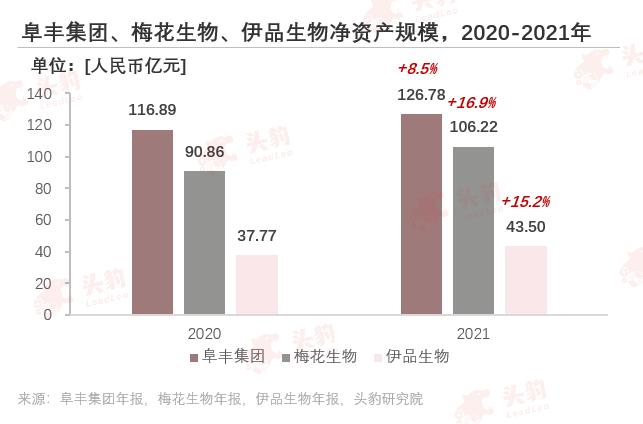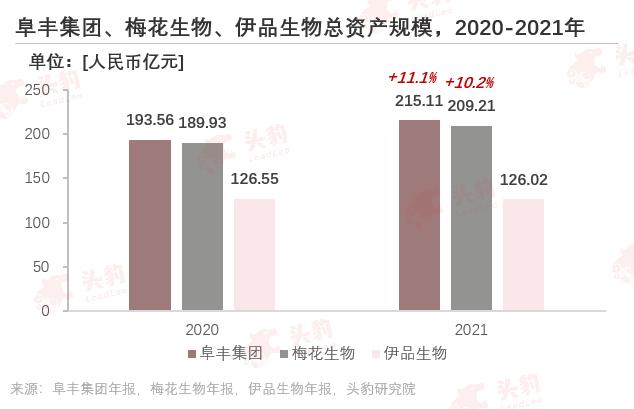 在总资产规模方面,阜丰集团与梅花生物均处于领先水平,二者2021年总资产规模双双突破200亿元大关,二者同比增幅也都超过10%,发展前景良好。2021年,伊品生物总资产为126.02亿元,相较上一年度并未有所增长,相距阜丰集团、梅花生物也有较大的差距。