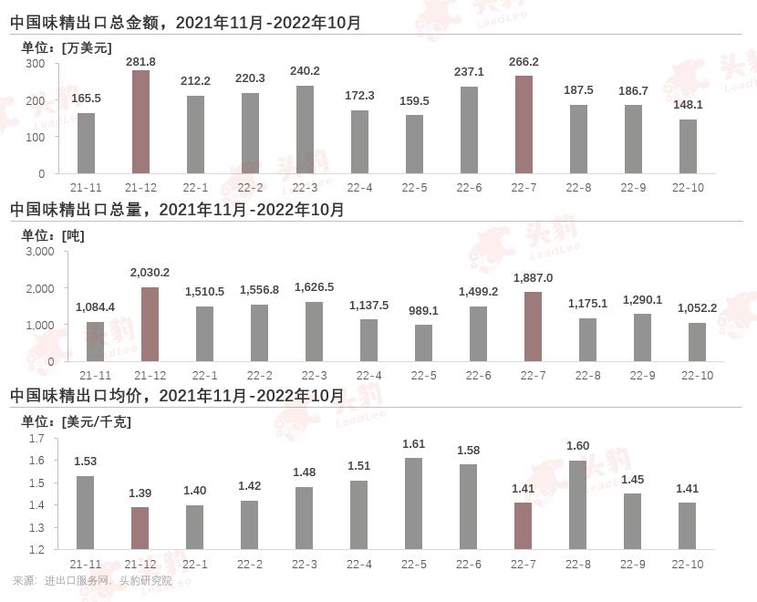 中国味精出口具有明显的周期性,其中出口总金额与出口总量变化较为同步