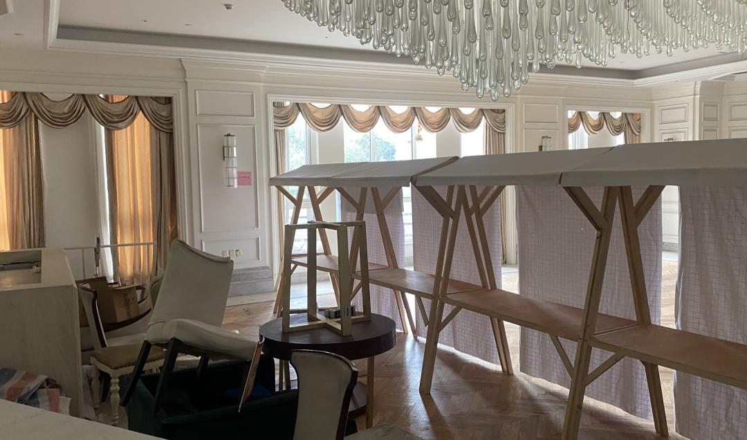 熄灭的精致吊灯、空置的房间、空无一人的前台 。
