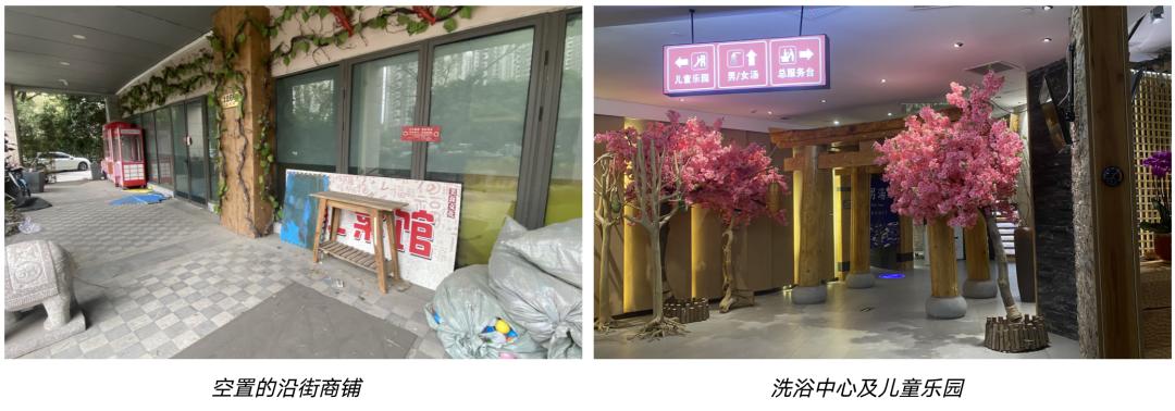 大量的沿街商铺空置,内里也被改造成了洗浴中心和儿童乐园。